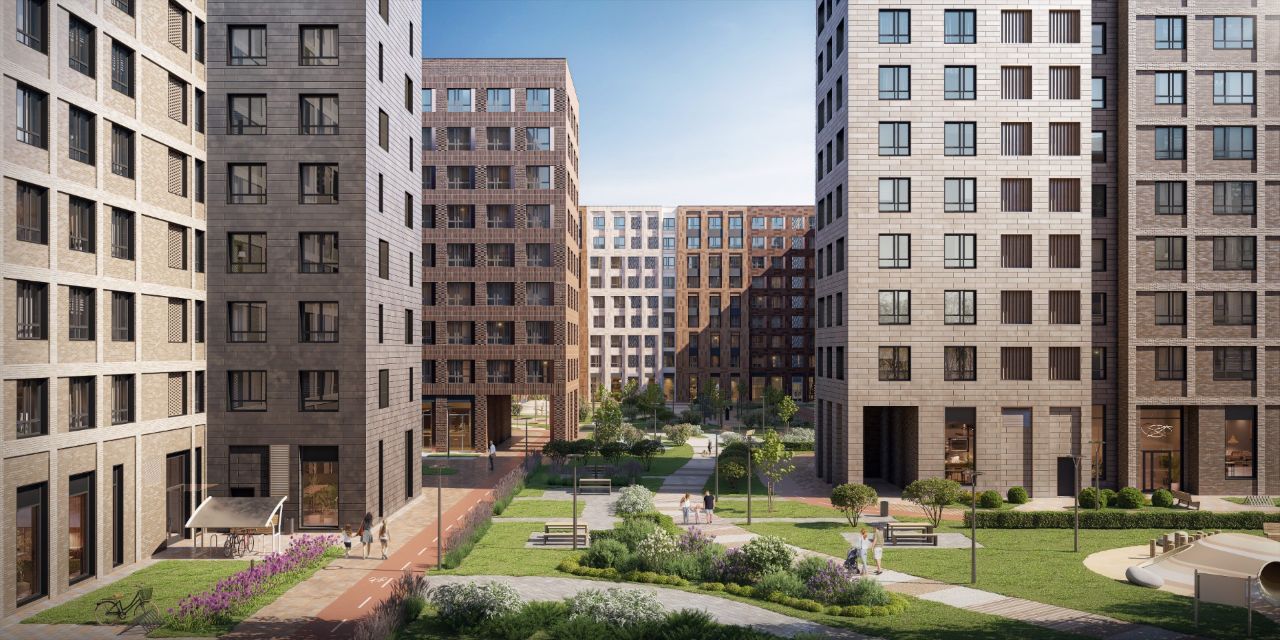 Концепцию камерного квартала из 5 корпусов разработало бюро GREN Architects — в ее основе элементы, характерные для голландской архитектуры, в сочетании с современными трендами. В отделке элегантных 9-этажных зданий использовали цветовые переходы — от темных строгих оттенков до светлых воздушных тонов. Меняются и материалы — от традиционной кладки до крупноформатных панелей. Также в отделке используются керамогранит, фиброцемент и бетонная плитка. На подземных этажах находятся индивидуальные кладовые, где можно хранить сезонные и габаритные вещи. Теперь у сноуборда, елки и банок с вареньем будет свое место.